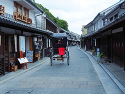 蔵の内部はみやげ店や食事処などに変わっていますが、蔵と細い道を走る人力車、川の上を行く「舟流し」は情緒もたっぷりで、観光客を一度に虜にする魅力が溢れています。