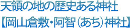 天領の地であった倉敷を見下ろす高台に阿智神社はあります。創祀り1700年を超える古い神社で、主祭神は宗像三女神です。この神社は高台から倉敷の移り変わりをずっと見守ってきたのです。