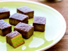 宇治抹茶の世界を広げたスイーツです。宇治抹茶にマスカルポーネチーズを加えた抹茶クリームをパイで挟みました。そのうえで、ミルクチョコレートでコーティング。チョコと抹茶、チーズがうまくマッチしていて驚かされます。