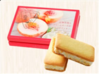 山梨県のSAだけに県産白桃のピューレが使われています。白桃ピューレの入ったクッキーがサンドするのは、クリームチーズ入りのホイップチョコ。一見、チョコに見えませんが、これも地産のチョコ菓子なのです。