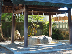 その時の松とは別のものですが、現在は似た松が植樹され、旧社地の松の根元にあった大石が、安久美神戸神明社に移されています。