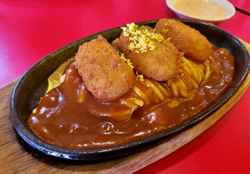 私のイチオシは豊橋名物の「あんかけスパゲッティ」。さっそく訪ねたのはスパゲッ亭チャオ本店。熱々鉄板に乗って出てきたあんかけスパゲッティのカニコロ付きはクセになるおいしさでした。