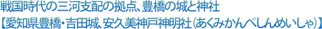 今川氏親や松平長親らが活躍した戦国時代初期。今川義元が力をもった戦国時代中期。そして徳川家康の威力が増した戦国時代末期。三河は重要な拠点でした。現在、豊橋には復元された吉田城と、お城のすぐ近くに安久美神戸神明社が残ります。
