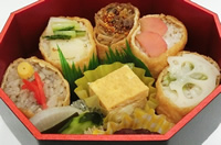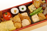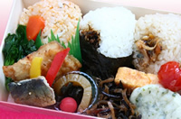 お花見に楽しい彩り豊かなお弁当は、栃木県の伝統的な山菜ごはんをはじめ、生産量日本一の栃木産かんぴょうを巻いたいなり寿司などが入っています。低カロリーなのも女性にいいのでは。