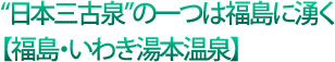 一つは愛媛の道後温泉。もう一つは兵庫の有馬温泉。そして「三箱の御湯」と呼ばれるいわき湯本温泉だ。