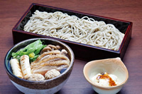 ●奥久慈しゃもを使った温かい汁と冷たい蕎麦のセットが、これからの季節にもいい。