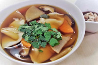 ◆佐野といえば、ご存じの佐野ラーメンの人気は絶大です。そのなかで異色の存在がご当地郷土料理の耳うどん。野菜やキノコと一緒に召しあがってください。