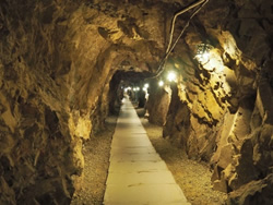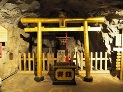 「観光坑道」は実際の坑道のうちの約350mを整備して歩けるようにした。当時、坑道作業員たちが安全を祈願した山神社や黄金の鳥居、銭洗い場などが設置され、一種の金運パワースポットになっている。