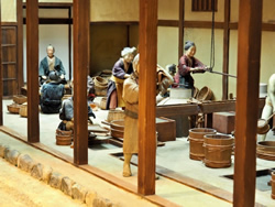 「黄金館」は千石船(弁財船)や金山総奉行などの様子がジオラマで再現されている。
