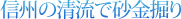 和田峠の清流にザルを入れ、粒子の細かい砂をすくいあげるのだ。ザルの中に砂が溜まったら、今度はザルを清流の水につけて、ザルの中の砂を振る。