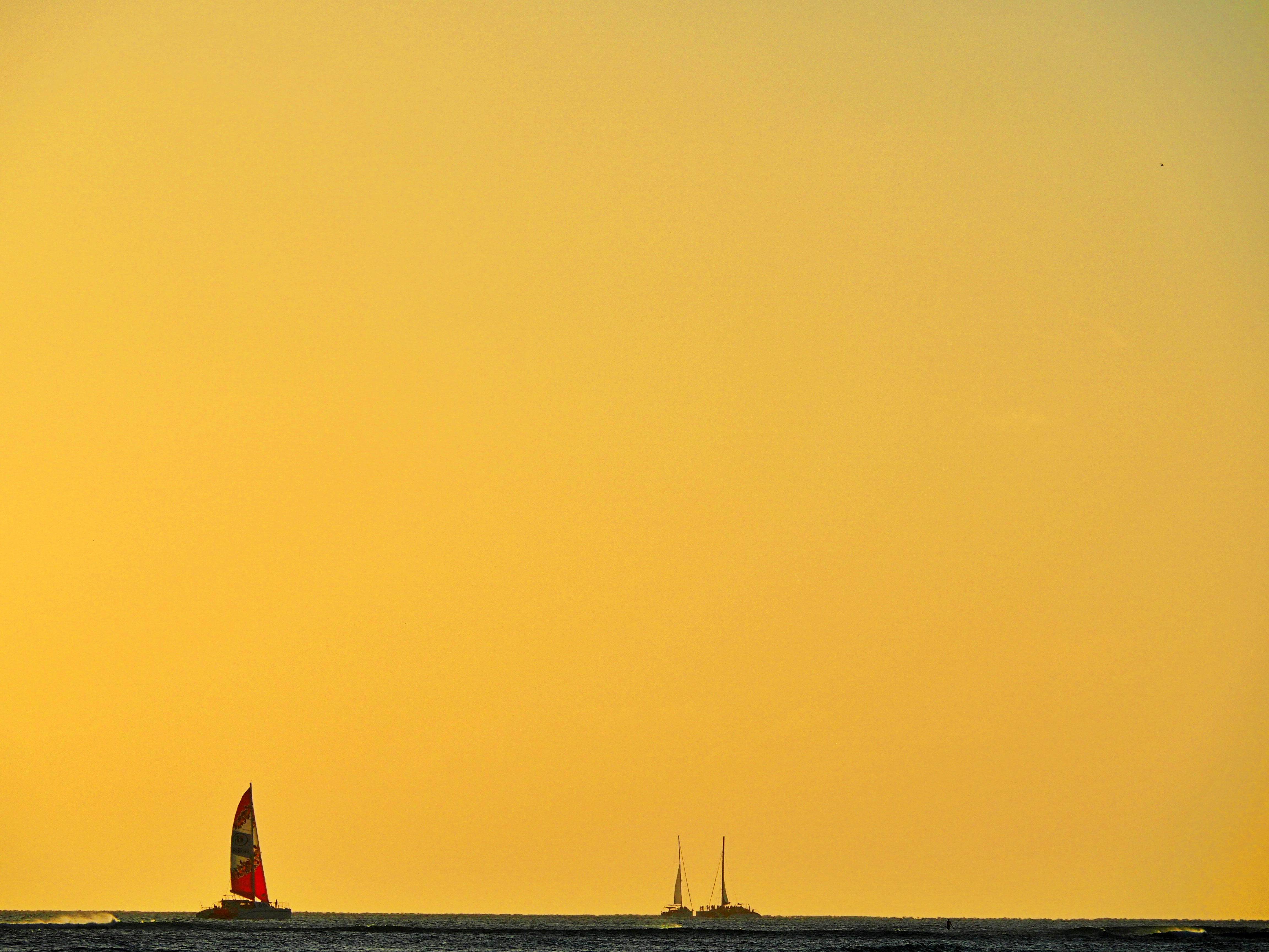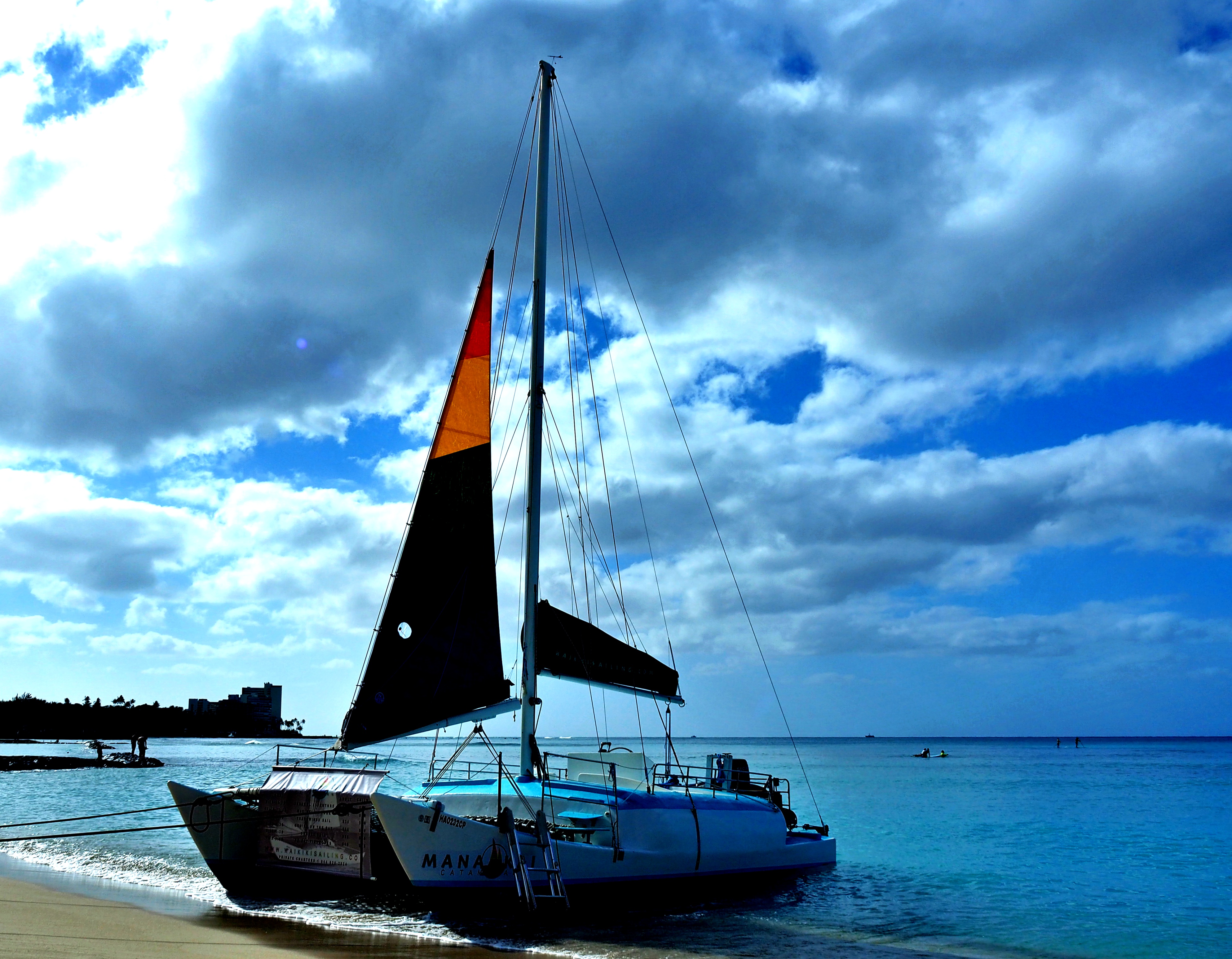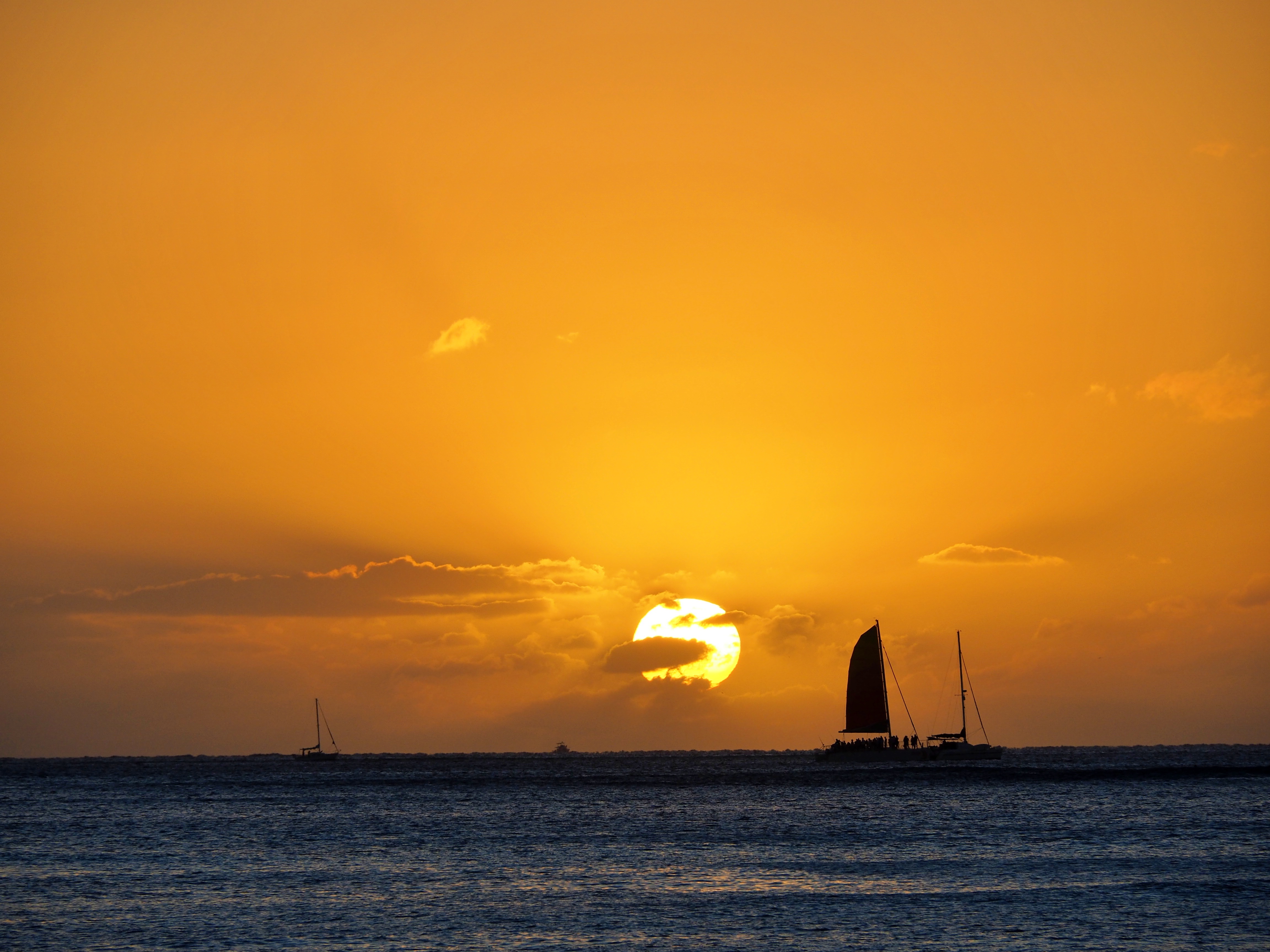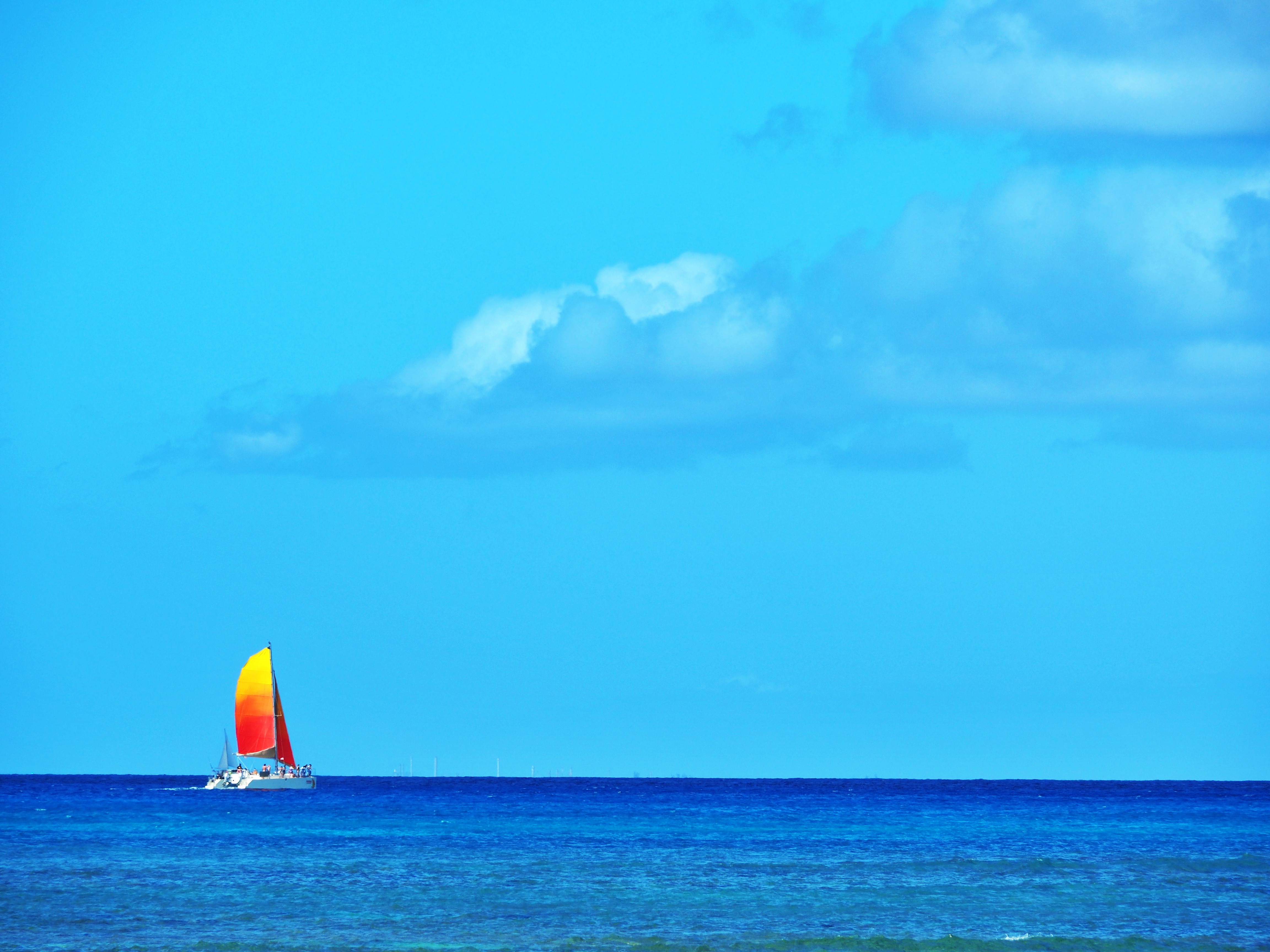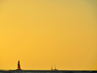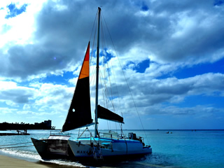 ワイキキビーチは、そこに立って眺めているだけで心安らぎます。ビーチに留まるヨット、沖に浮かぶヨット。時間の経過とともにさまざまな風景が見られました。