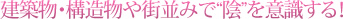 建築物・構造物や街並みを撮る際に意外と見落としがちな「陰」の存在。狙った部分を引き立たせたり、建物をより印象的に見せたりと、意外とその価値は高いのがおわかりいただけたでしょうか。