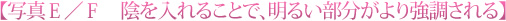 明るい部分を強調するために、わざと陰になっている部分を入れるのもテクニックの一つです。
