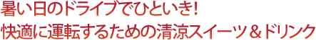 5月に30度を超えたり、北海道で40度近くになったり。今年の夏も暑そうです。エアコンを効かせても、長距離運転は楽ではありません。そんなときのSA清涼スイーツ&ドリンクをご紹介します。
