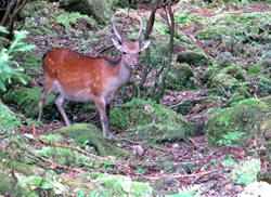 待ちに待ったトレッキングの日。森を行くとヤクシカが姿を現しました。巨大な杉も見られ、やがて秀吉の命によって切られた樹齢3000年の巨木が登場しました。ウイルソン博士によって世界に知られたために「ウイルソン株」と名付けられた切り株です。ハート型なのが印象的でした。