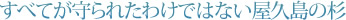 海の上に浮かび、台風や豪雨もしばしば訪れる屋久島の杉は耐菌性に強く、耐久性も優れていました。