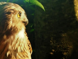 知床への旅のベースにした養老牛温泉の窓の外に現れたシマフクロウ