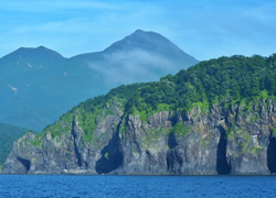 羅臼では温泉めぐりのほかにクルーズが楽しい。ウトロ側のクルーズは、切り立った断崖や、奇岩、多くの滝、半島の山々を眺めるものになる。海岸線にヒグマを見つけることも可能だ。