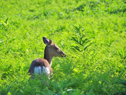 すぐ横の草がガザガサと音を立てる。ヒグマかと、緊張感が走る。そこには4頭のエゾシカがいた。