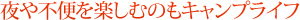 キャンプ通になりたいのなら、日が落ちてからの長い時間や、不便さも、余裕をもって楽しんでみたいものです。