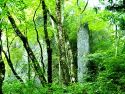 中国山地は全般的に風化しやすい花崗岩が多く、長い歳月にわたって浸食を受けた痕跡も見受けられます。山肌にごろごろとした岩が眺められるのも、鍾乳洞が多いのもこうした理由です。