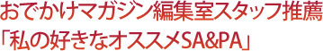 全国各地に取材ででかける「おでかけマガジン」編集室スタッフと編集室に出入りするカメラマンに、好きなSA&PAとその理由を聞いてみました。ドライブの時に通ったなら、ぜひ立ち寄ってみてください。
