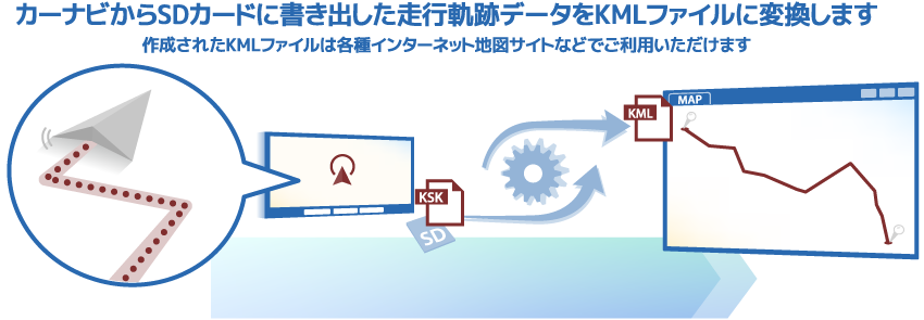 当サイトのMyページにて、書き出した走行軌跡ファイル(拡張子ksk)をKMLファイルに変換します。