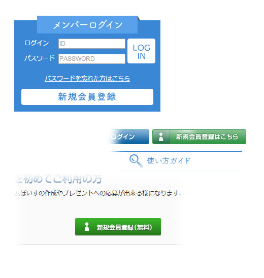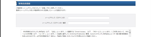 サイト内の「新規会員登録はこちら」または「新規会員登録」ボタンを押して、新規会員登録の画面を表示させます。