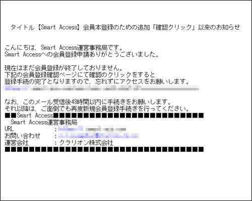 上記の手順で入力したPCのメールアドレスに”仮登録”のメールが届きます。 ”仮登録”のメールに記載されているURLをクリックします。